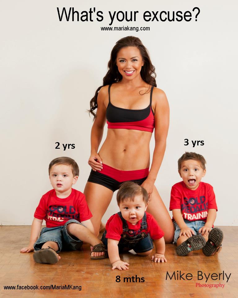 The femisphere got busy this week putting yet another confident woman in her place: Humiliating her, belitting her, accusing her of being a bad mother–you name it, she’s guilty of it. You’d think this woman had the power and position of a pop star or political leader. You’d think that she’s using her power to convince people to walk off a cliff or go to war. The truth? She’s a fitness professional who posted a Facebook picture of herself in workout clothes with her kids along with the text, “What’s your excuse?”